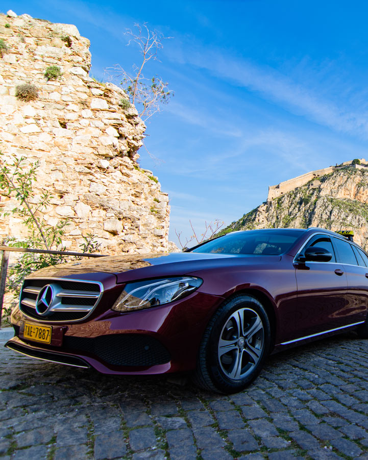 At Taxi In Greece we have carefully selected our vehicles with the customers best interest in mind all while giving great attention to comfort and safety. Our taxis are all "Mercedes Benz" models all purchased after 2018, making them reliable and trustworthy whilst maintaining a sense of style and elegance. Cleanliness and hygiene are of upmost importance to us so we make sure our cars are cleaned by professionals on a regular basis. Travel in our taxis and journey through Greece with a peaceful mind and no worries!