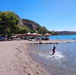 The beach in Vivari is ideal for families or small groups of friends, the coastline is split into small coves that can serve as tiny private beaches while the lagoon and the beaches of Plaka and Kondyli are close to Vivari.